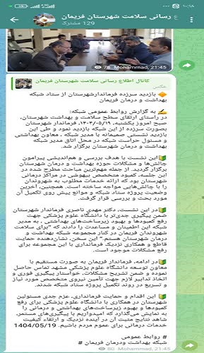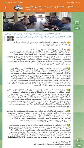 🔰در ادامه، فرماندار فریمان به صورت مستقیم با معاون توسعه دانشگاه علوم پزشکی مشهد تماس حاصل نموده و ضمن تشریح مشکلات، خواستار پیگیری فوری و اتخاذ تدابیر لازم جهت تأمین نیروی متخصص مورد نیاز و تسریع در روند تکمیل پروژه ستاد شبکه شدند.