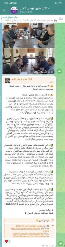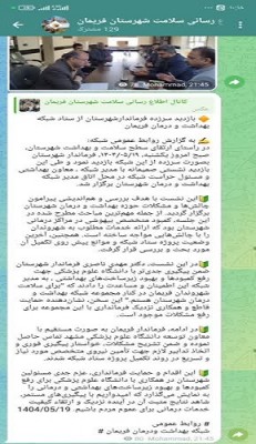 🔶 بازدید سرزده فرماندارشهرستان از ستاد شبکه بهداشت و درمان فریمان