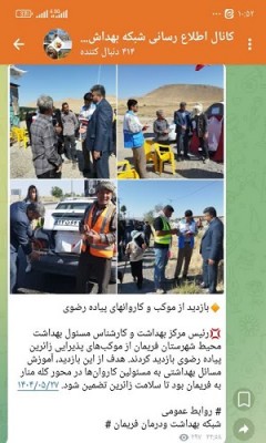 بهداشتی به مسئولین کاروانها در محور کله منار به فریمان بود تا سلامت زائرین تضمین شود.