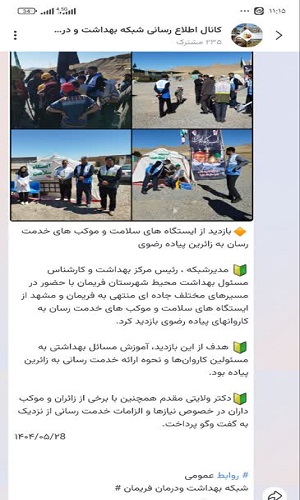 🔰 هدف از این بازدید، آموزش مسائل بهداشتی به مسئولین کاروانها و نحوه ارائه خدمت رسانی به زائرین پیاده بود.