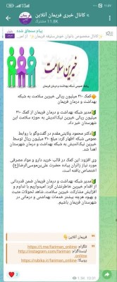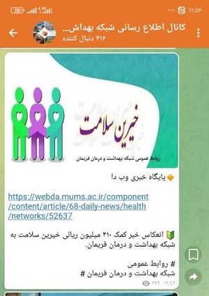 🔰مدیر شبکه بهداشت و درمان فریمان از کمک ۴۱۰ میلیون ریالی خیرین نیکاندیش به حوزه سلامت این شهرستان خبر داد.