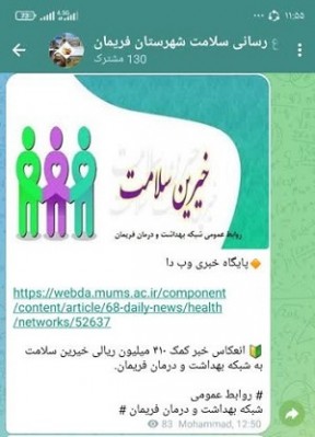 🔰مدیر شبکه بهداشت و درمان فریمان ضمن قدردانی از اقدام خیرین خاطرنشان کرد: امیدواریم با تداوم و افزایش