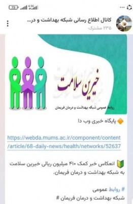 🔶کمک ۴۱۰ میلیون ریالی خیرین سلامت به شبکه بهداشت و درمان فریمان