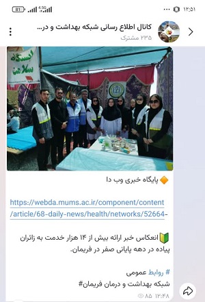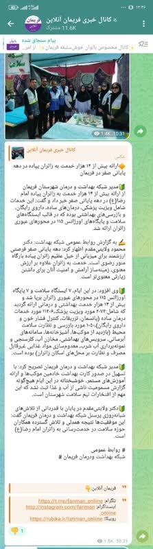 🔰دکتر ولایتیمقدم در پایان با قدردانی از تلاشهای شبانهروزی پرسنل شبکه بهداشت و درمان فریمان گفت: این موفقیتها نتیجه همدلی و تلاش گسترده همکاران حوزه سلامت در خدمترسانی به زائران امام رضا(ع) است.