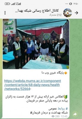 🔰مدیر شبکه بهداشت و درمان شهرستان فریمان از ارائه بیش از ۱۴ هزار خدمت به زائران پیاده امام رضا(ع) در دهه پایانی صفر خبر داد و گفت: این خدمات شامل ویزیت پزشکی، درمانهای ساده، داروی رایگان، و بازرسیهای بهداشتی بوده که در قالب ایستگاههای سلامت و پایگاههای اورژانس ۱۱۵ در محورهای عبوری زائران ارائه شد.