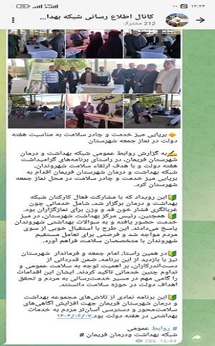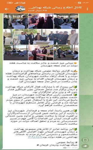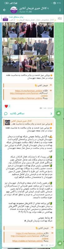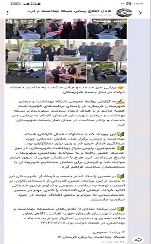 🔰این برنامه نمادی از تلاش‌های مجموعه بهداشت و درمان شهرستان فریمان جهت افزایش آگاهی‌های سلامت‌محور و دسترسی آسان‌تر مردم به خدمات بهداشتی در هفته دولت بود.۱۴۰۴/۰۶/۰۷