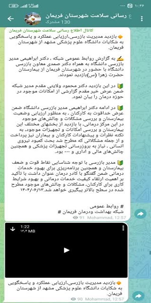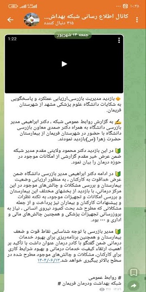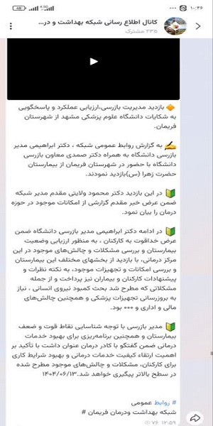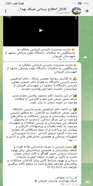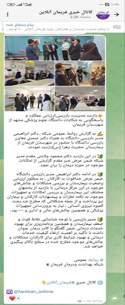 🔸بازدید مدیریت بازرسی،ارزیابی عملکرد و پاسخگویی به شکایات دانشگاه علوم پزشکی مشهد از شهرستان فریمان.