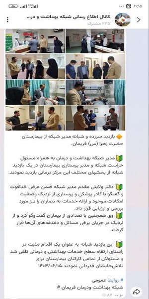 🔰 این بازدید شبانه به عنوان یک اقدام مثبت در راستای ارتقاء سطح خدمات بهداشتی و درمانی تلقی شد