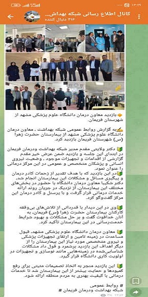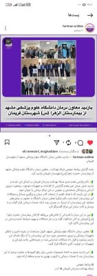 ✍به گزارش روابط عمومی شبکه بهداشت ، معاون درمان دانشگاه علوم پزشکی مشهد از بیمارستان حضرت زهرا (س)