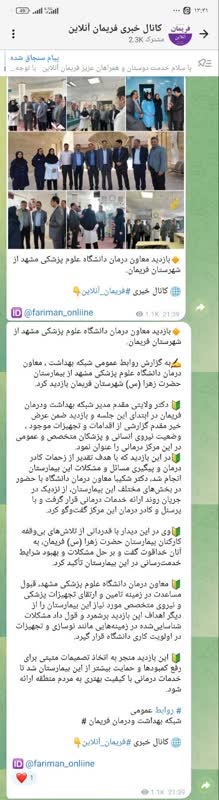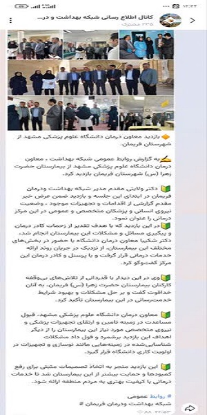 🔸بازدید معاون درمان دانشگاه علوم پزشکی مشهد از شهرستان فریمان.
