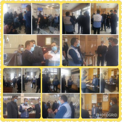 بازدید سرزده معاون بهداشتی شبکه بهداشت و درمان فریمان به همراه کارشناس مسئول بهداشت محیط و نماینده اتاق اصناف از روند اجرای پروتکل های بهداشتی در بانک ها و ارائه توصیه های لازم در خصوص جلوگیری از ازدحام مراجعان به بانک ها