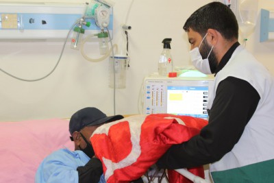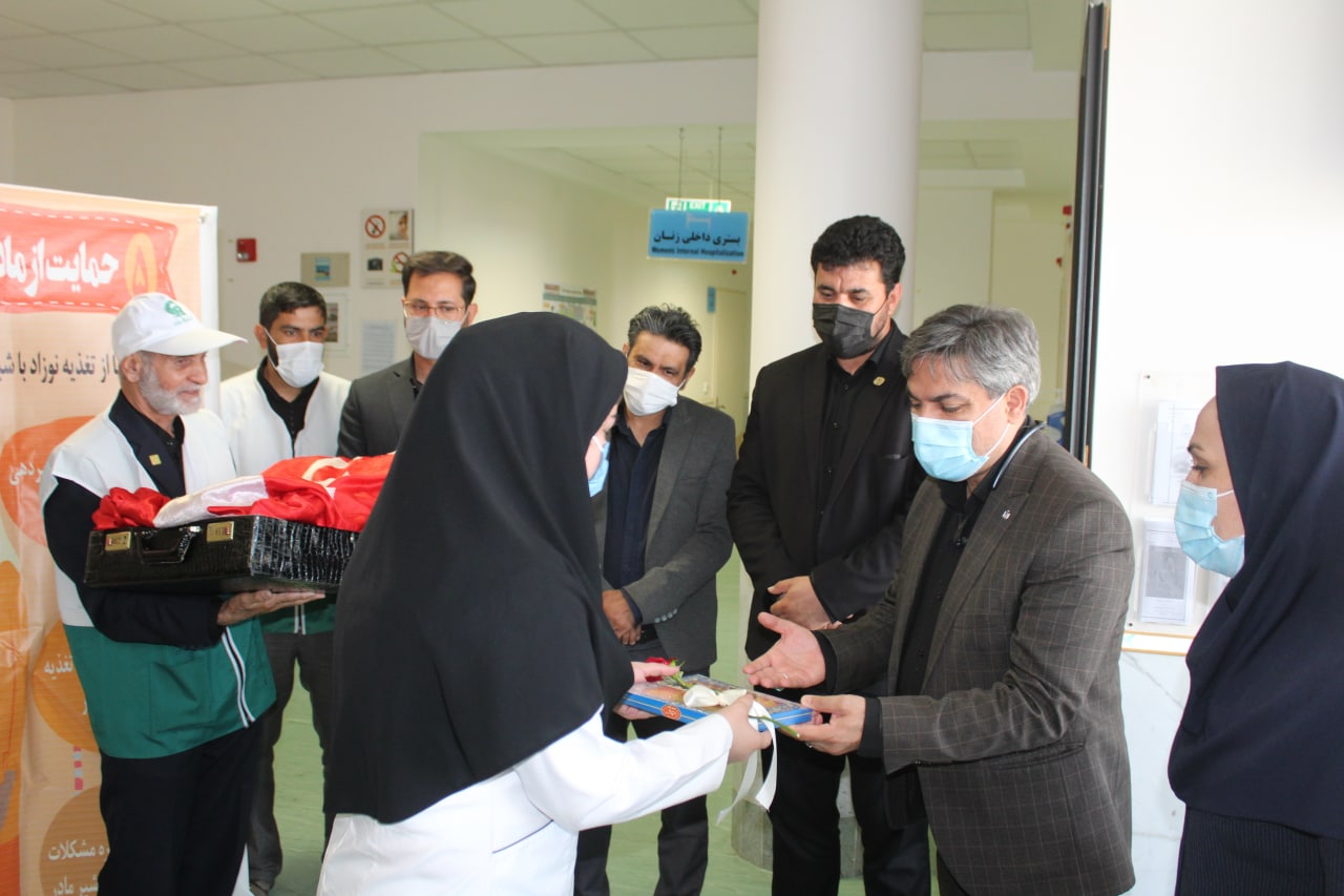 خادمین بارگاه منور رضوی به همراه مسئولین شهرستانی و مسئولین بیمارستان و کادر درمان که به استقبال آنها آمده بودند ضمن عیادت از بیماران بستری در بخش های بیمارستان ،شفای عاجل همه بیماران را از درگاه خداوند متعال مسئلت کردند.