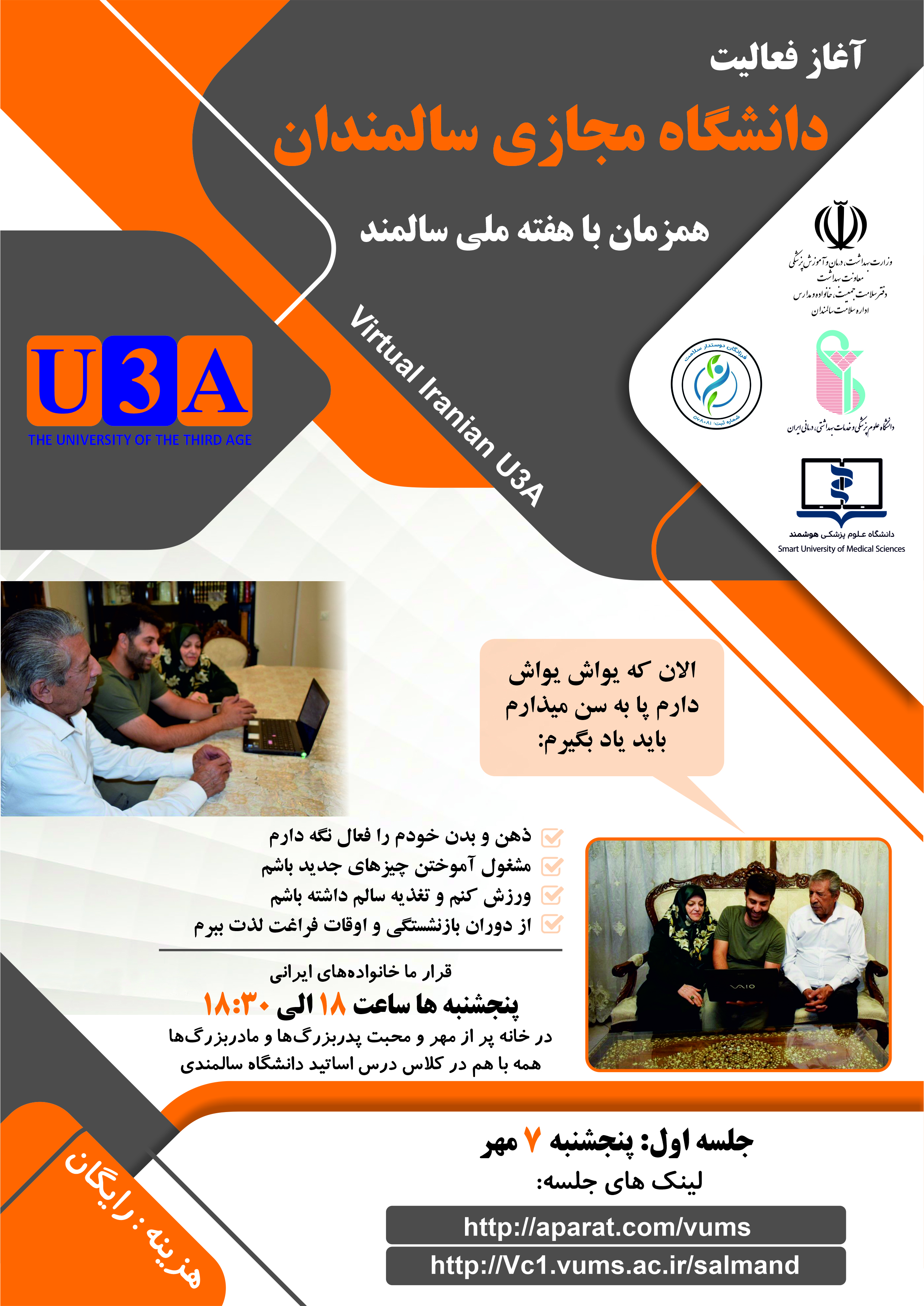 فعالیت دانشگاه مجازی سالمندان با مشارکت استادان مجرب از سراسر کشور برای ارائه آموزش در حوزههای مختلف مرتبط با دوره سالمندی، همزمان با هفته سالمند آغاز شده و آموزشها، روزهای پنجشنبه هر هفته از ساعت 18 تا 18:30 از طریق آدرس https://vc1.vums.ac.ir/salmand قابل مشاهده سالمندان عزیز و خانوادههای ایشان است.