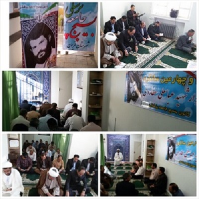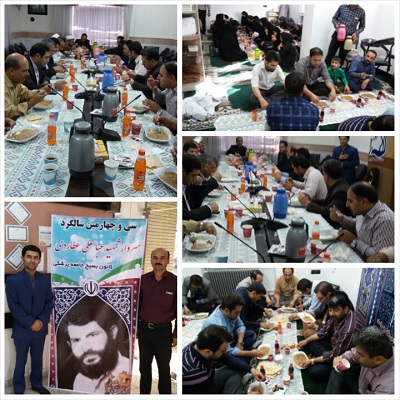مراسم گرامیداشت سالروز شهادت شهید عباسعلی عطاردی پدر همکار علی عطاردی ،با حضور جمعی از مسئولین در نمازخانه شبکه بهداشت و درمان برگزار گردید.درابتدا، مراسم زیارت عاشورا توسط مداح اهل بیت قرائت شد و در ادامه امام جمعه معزز شهرستان حجت الاسلام والمسلمین حاج آقای ایزدی به ایراد سخنرانی پرداختند.درپایان این مراسم از میهمانان پذیرایی شد.این مراسم با مشارکت شبکه بهداشت و کانون بسیج جامعه پزشکی و فرزند این شهید والامقام برگزار گردید.روابط عمومی شبکه بهداشت و درمان فریمان | ||