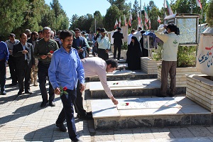 مراسم غبارروبی و عطر افشانی گلزار شهدا با حضور مسئولان شهرستان ،نيروهاي نظامي و انتظامي و مردم شهيد پرور شهر فريمان در محل گلزار شهدای بهشت صادق فریمان برگزار شد. در این آیین معنوی که درتاریخ 97/6/1 برگزار شد شرکت کنندگان با غبارروبی و عطر افشانی مزار شهدا، ضمن قرائت فاتحه و تجدید پیمان با آرمان های والای انقلاب، به مقام شامخ شهدای گلگون کفن شهرستان ادای احترام کردند . |