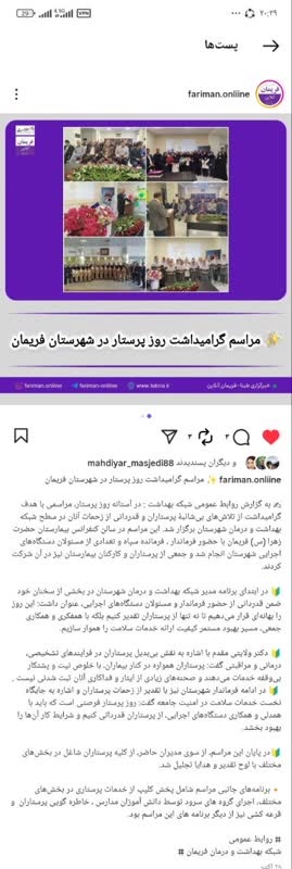 ✨ مراسم گرامیداشت روز پرستار در شهرستان فریمان
