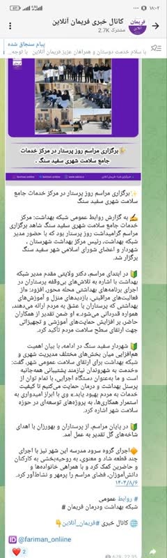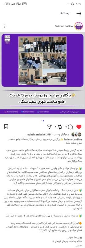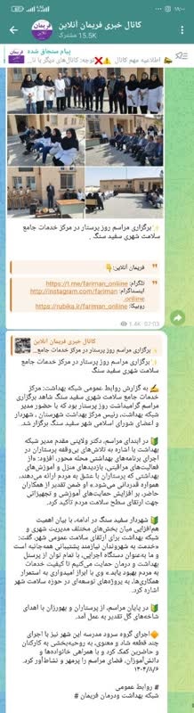 ✨برگزاری مراسم روز پرستار در مرکز خدمات جامع سلامت شهری سفید سنگ