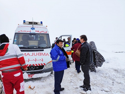 دکتر محمد علی پاینده اظهار داشت : طی تماس تلفنی با اورژانس ۱۱۵ فریمان مبنی بر گرفتار شدن مادر باردار ساکن روستای قنداب در برف و بوران فوراً تیم اورژانس ۱۱۵ پایگاه فرهاد گرد به محل اعزام شد که پس از انجام یک عملیات ۶ ساعته با کمک حلال احمر مادر باردار به مرکز درمانی اعزام شد.