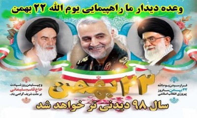 ملت شریف ایران با حضور پر شور خود در راهپیمایی یوم الله 22 بهمن بار دیگر ندای اتحاد و سربلندی ایران اسلامی را سر خواهد داد و اقتدار و صلابت ایران متحد را برای جهانیان به اثبات خواهد رساند.